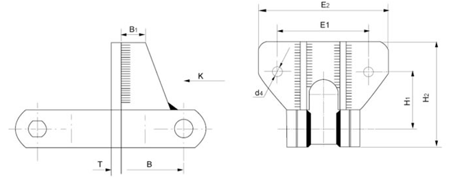 H1(mm)H2(mm)E1(mm)E2(mm)d4(mm)B(mm)B1(mm)T(mm)