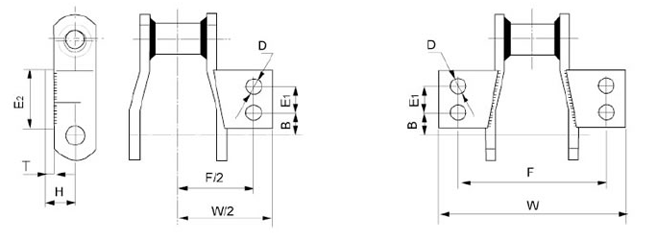 B(mm)D(mm)E1(mm)E2(mm)F(mm)H(mm)W(mm)T(mm)