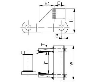 B(mm)E1(mm)E2(mm)F(min)(mm)H(mm)T(mm)W(mm)