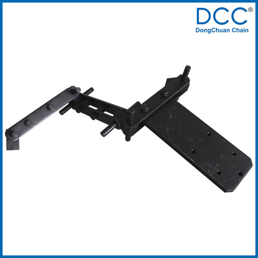 雙鉸接鏈條由一節(jié)十字節(jié)和鏈條相連,鏈條能360°內(nèi)任意轉(zhuǎn)動,可以使用十字軌道和圓形軌道,鏈輪的橫縱面都有專用的軸承支撐,使鏈條運(yùn)行時更平穩(wěn),在鏈條的底部裝有吊具板,可以根據(jù)不同的使用要求設(shè)計。鏈條的零件為中碳鋼,經(jīng)熱處理后使用,對部分有腐蝕的環(huán)境,在鏈條的表面進(jìn)行了發(fā)黑處理。